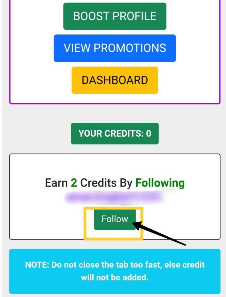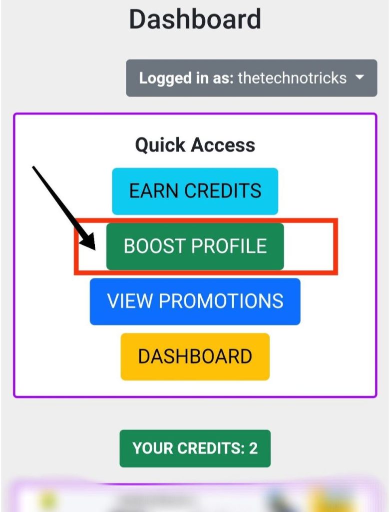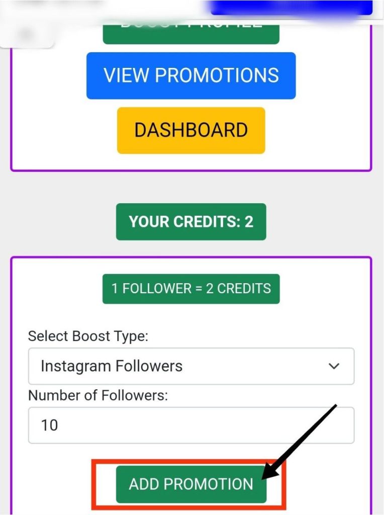 If you earn many credits then you have to click on the BOOST PROFILE button to send followers on your Instagram account.