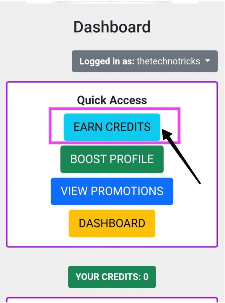 After that, you have to earn credits in this tool, for this click on the earn credit button.
