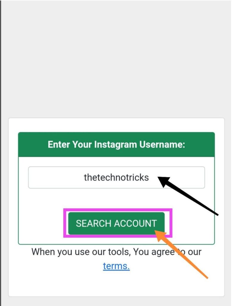 Begin by opening the downloaded application. Then, input your Instagram username in the provided field, and click the “Search Account” button located below.